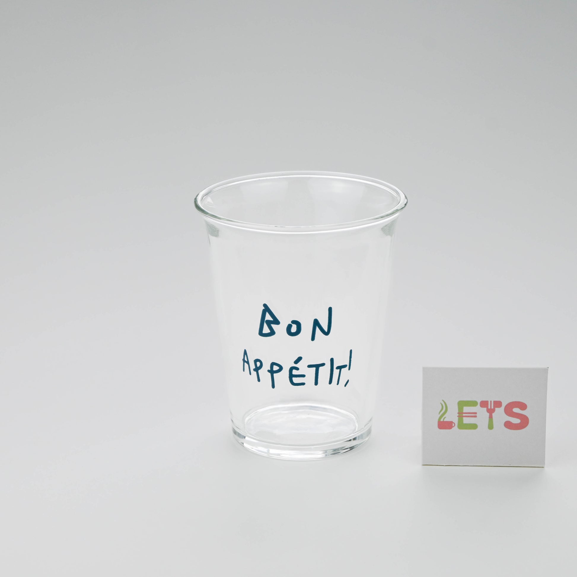 French Quote Print Glass Cup, Clear Tumbler - Bon Appétit