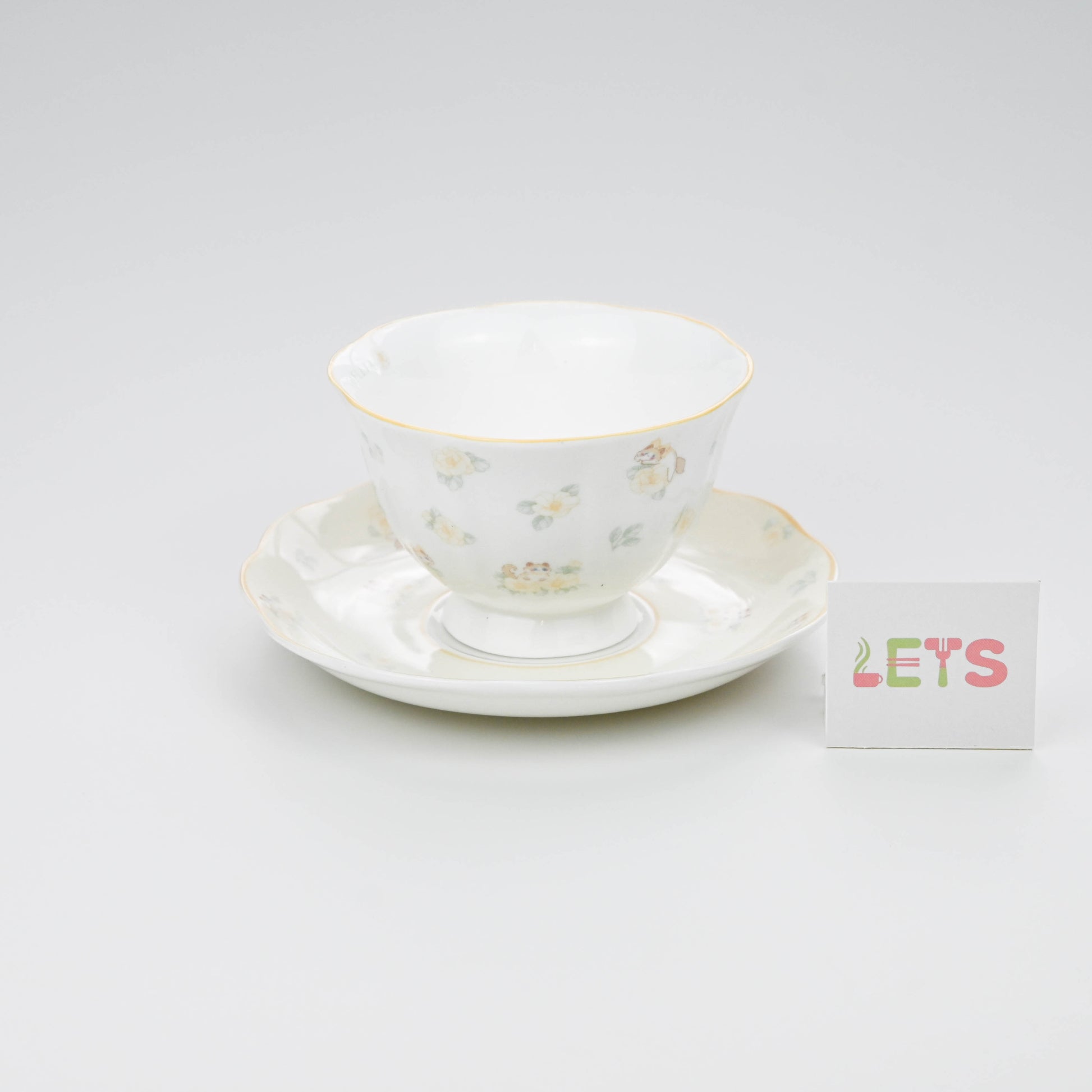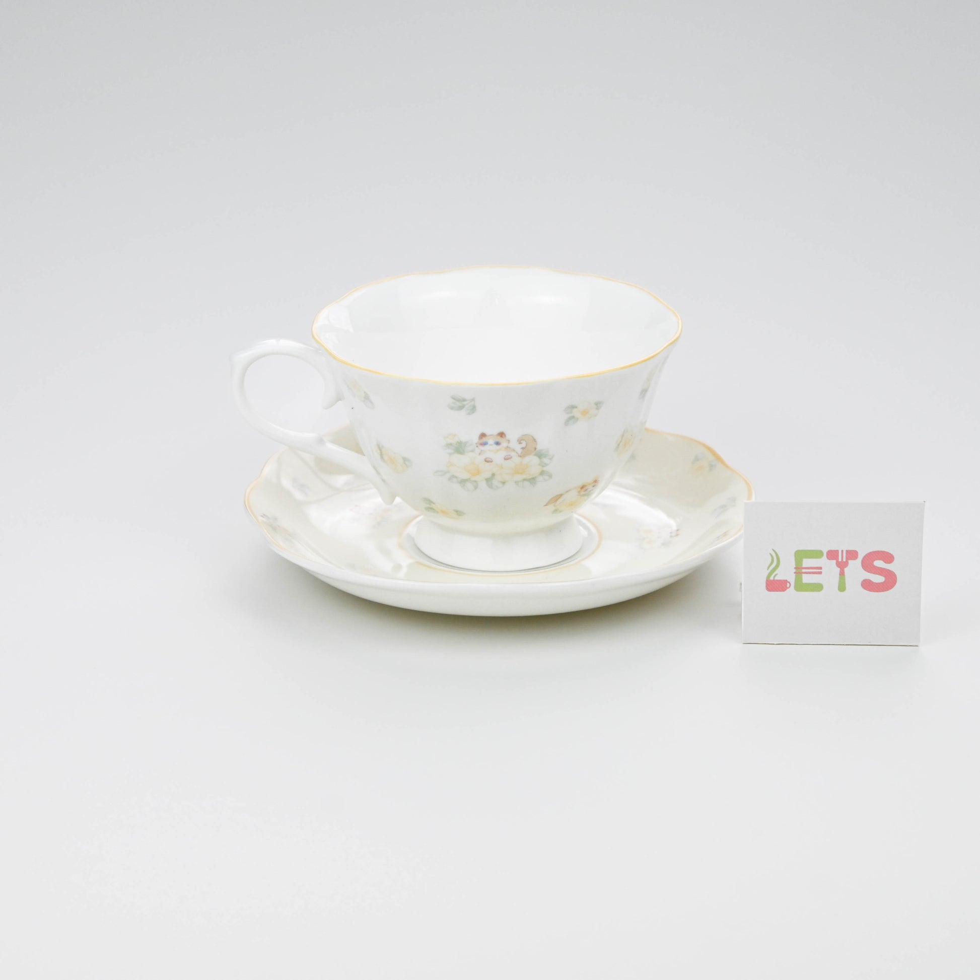 Ragdoll Cat Ceramic Cup and Saucer Set, Vintage Floral Teacup with Plate